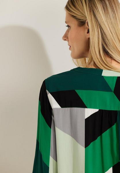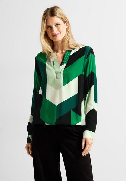 Grafischer Chic! Die Damenbluse von CECIL mit Langarm, geschlitztem Rundhalsausschnitt und Gummibund überzeugt in luftiger Viskose. Sie ist mit ihrem grafischen Muster ein vielseitiger Begleiter. Mit dieser Damenbluse bist du von Freizeit bis Büro immer gut gekleidet!