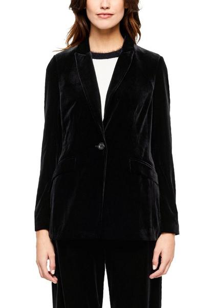 edel schimmernder Samt, Reverskragen und ein Verschlussknopf, verstärkte Schultern, zwei Pattentaschen, Regular Fit; Rückenlänge bei Größe 36 ca. 69 cm, elastischer, fließender Samtstoff; gefüttert, Passende Hose: Artikelnummer 11.911.73.4465,
