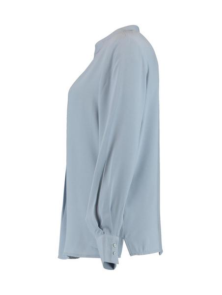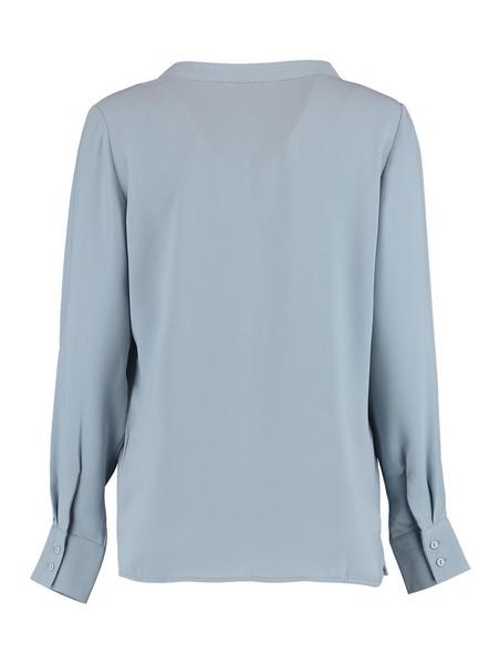 Bluse aus leichter Viskose mit V-Ausschnitt ohne Kragen. Legere Passform mit langen Ärmeln und breiten Manschetten.