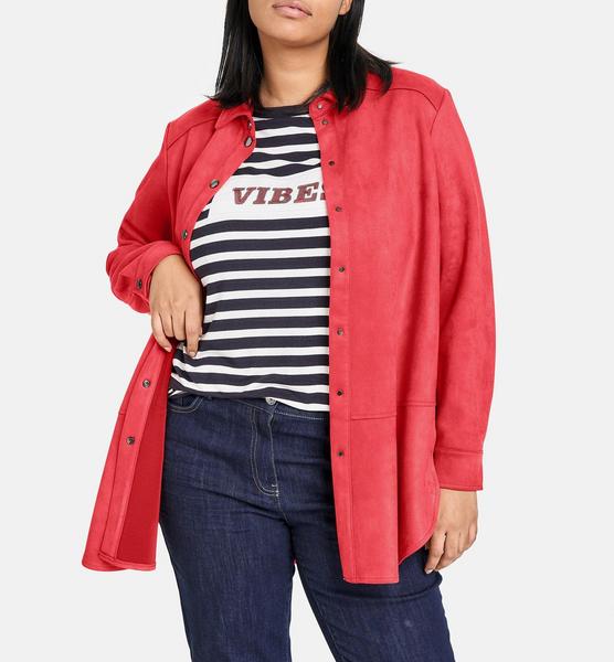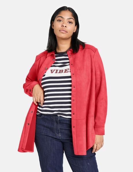 Mit Veloursleder-Charakter. Abgerundeter Saum mit Seitenschlitzen. Komplettiert dein Outfit und sollte in keiner Garderobe fehlen: Mit der figurumspielenden Longbluse eröffnen sich dir zahlreiche Styling-Ideen. Das elastische Material mit Veloursleder-Optik sorgt für ein angenehmes Tragefeeling. Lässige Gestaltungsdetails, wie etwa Seitentaschen, vervollkommnen das Gesamtbild.