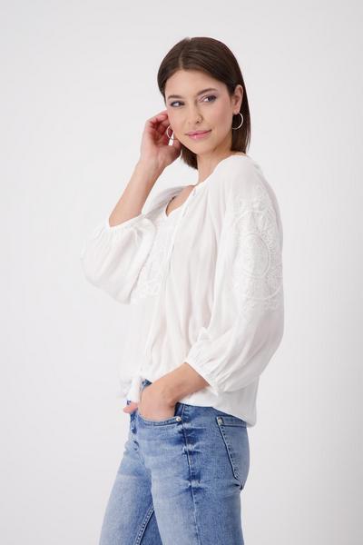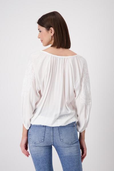 Die stylische Bluse aus 100% nachhaltiger EcoVero Viskose überzeugt mit Stickerei und langen Raglanärmeln.