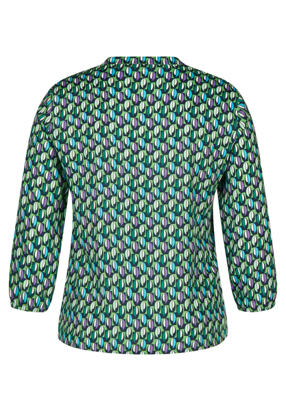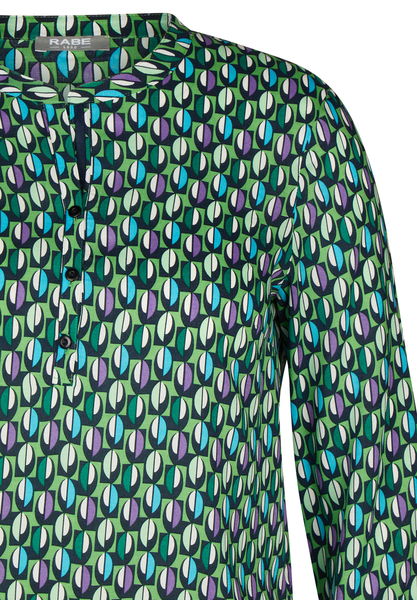 Die Bluse mit minimalem Allover-Muster ist ein stilvolles und vielseitiges Kleidungsstück. Hergestellt aus hochwertiger 100% Viskose, bietet sie ein angenehmes Tragegefühl und eine leichte, fließende Textur. Die Bluse verfügt über einen kleinen Stehkragen und eine elegante Knopfleiste, die ihr einen klassischen und ansprechenden Look verleihen. Der Gummizug am Saum sorgt für eine bequeme Passform und betont gleichzeitig die Taille. Der elastische Abschluss an den Ärmeln verleiht einen Hauch von Raffinesse und ermöglicht eine individuelle Anpassung. Mit ihrem dezenten Allover-Muster bringt diese Bluse subtile Eleganz in jeden Look. Sie lässt sich wunderbar zu einer Vielzahl von Outfits kombinieren, sei es zu einer schicken Hose für das Büro oder zu einer Jeans für einen lässigeren Freizeit-Look.