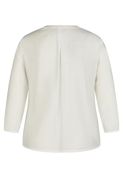 Ein wahrer Klassiker ist diese Bluse mit V-Ausschnitt. Der geraffte Ärmelsaum schließt enganliegend ab und verleiht der Bluse einen sehr femininen Touch. Die Rückenfalte stattet auch die Rückseite mit einem filigran gearbeiteten Detail aus. Kombiniert mit einer schwarzen Zigarettenhose und Loafern kreieren Sie einen sehr eleganten Black-and-White-Look.