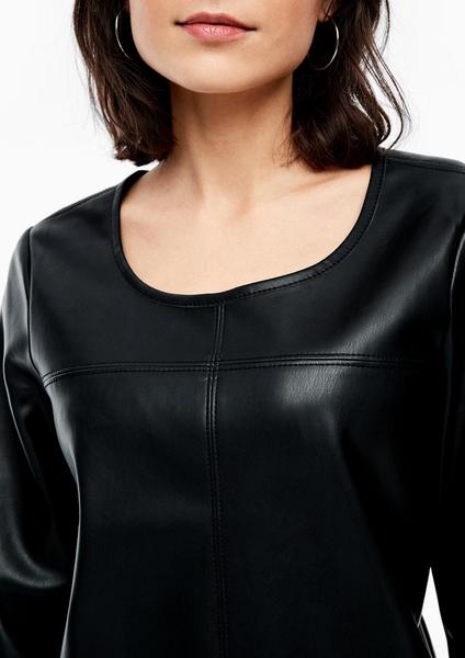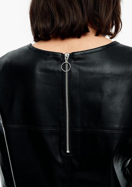 komplett aus authentischem Lederimitat, paspelierter Rundhalsausschnitt mit glänzendem Reißverschluss am Nacken, Ärmel in 3/4-Länge, Nähte an beiden Seiten, saumlose Abschlüsse, Regular Fit; Rückenlänge bei Größe 36 ca. 56 cm, elastische Kunstleder-Qualität mit weicher Innenseite
