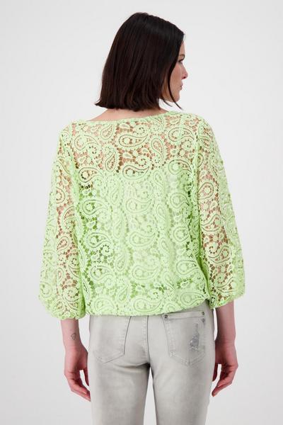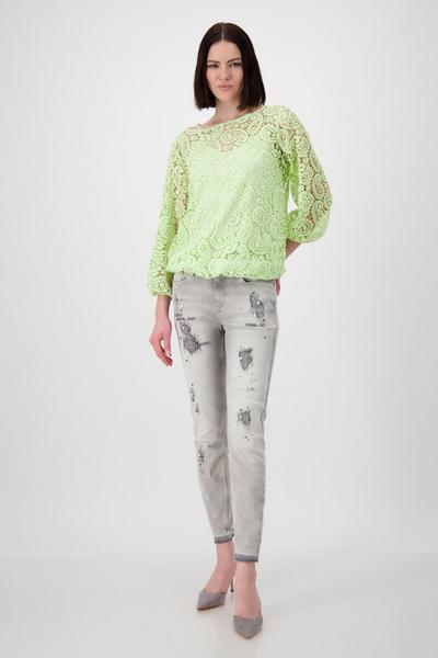 Raffiniert präsentiert sich das Spitzenshirt von monari. Die feminine Spitze zaubert einen unvergesslichen Look, der mit den elastischen Ärmelenden und einem U Boot Ausschnitt perfekt abgerundet wird. Auch der Saum hat einen elastischen Gummizug und sorgt neben der Regular Fit Passform mit 3/4 Arm für maximalen Komfort. Mit diesem Shirt mit Spitze kommen sommerliche Gefühle auf.