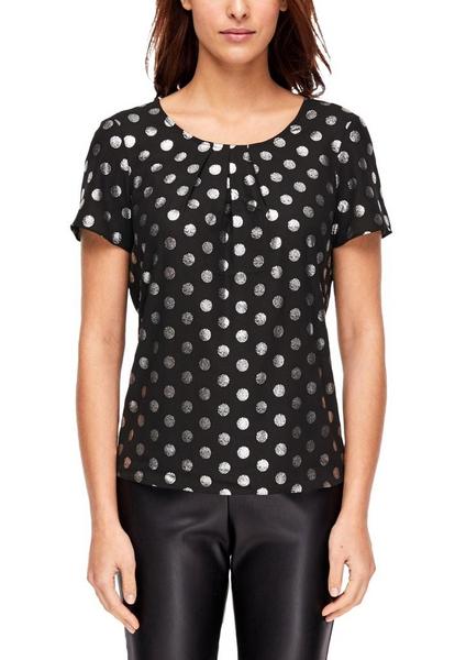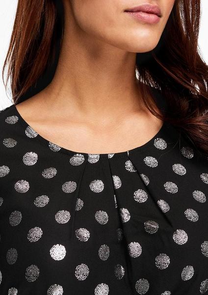 metallisch glänzender Pünktchen-Print, Rundhalsausschnitt mit Zierschlitz und Knopf im Nacken, dekorativer Faltenwurf am Dekolleté, Loose Fit; Rückenlänge bei Größe 36 ca. 56 cm, softe, fließende Crêpe-Qualität,