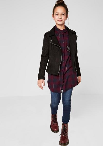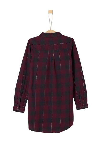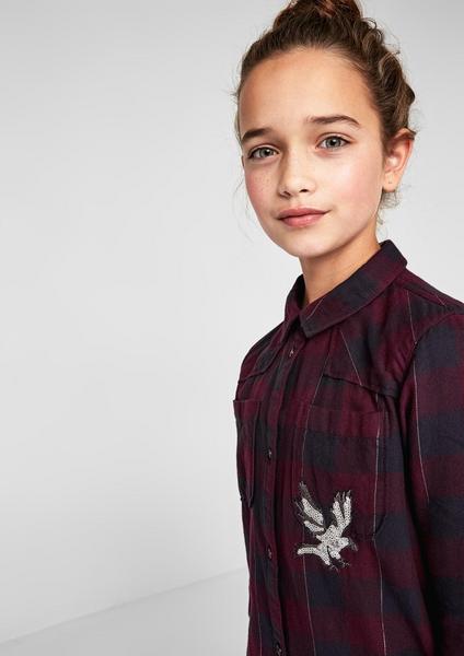 kariertes Design, mit Glitzerfäden durchwebt, Hemdblusen-Look mit Kragen und Knopfleiste und Manschetten, Adler-Patch mit Pailletten, zwei aufgesetzte Brusttaschen, lange Schlitze an den Saumseiten, bequeme Passform im Long-Shape; Rückenlänge bei Größe M ca. 76 cm, weicher Twill aus reiner Baumwolle
