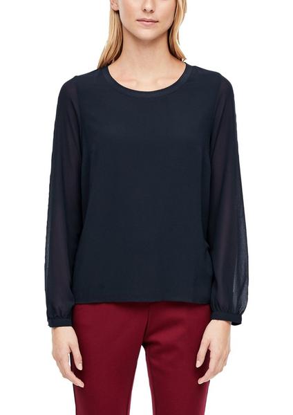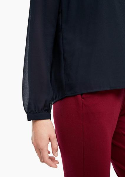 fein unterlegter Chiffon in Unicolor, Rundhalsausschnitt mit gerippter Blende, lange, semitransparente Ärmel, schmale Manschette mit Knopf, Loose Fit; Rückenlänge bei Größe 36 ca. 61 cm, zarte, fließende Chiffon-Qualität; teilweise mit Jersey-Futter