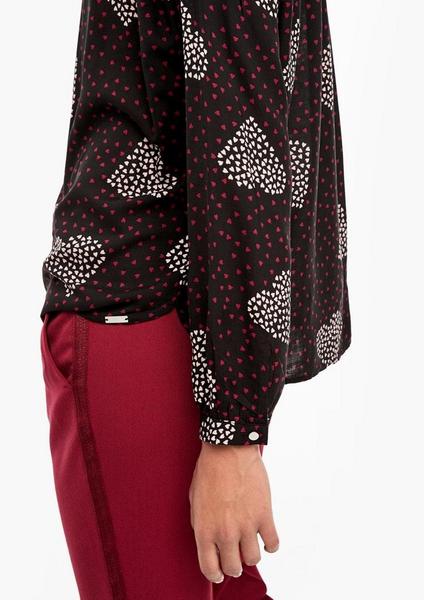mit angesagtem Musterprint allover, High Neck-Look mit gesmoktem Stehkragen mit Knöpfchen im Nacken, lange Ärmel mit schmaler Manschette, abgerundeter Saum, Regular Fit; Rückenlänge bei Größe 36 ca. 67 cm, feine, fließende Webware aus Viskose
