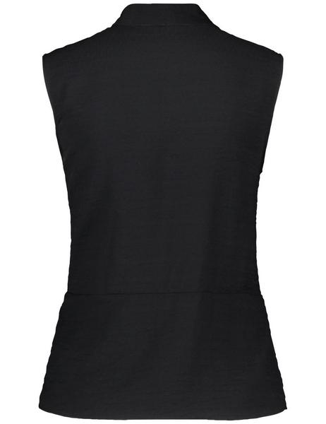 Wickel-Effekt mit seitlichem Binde-Detail. Angesetztes Schößchen. Lass den Sommer in dein Herz und in deinen Kleiderschrank mit dieser ärmellosen Wickelbluse! Ihr femininer Style mit Schalkragen, seitlichem Binde-Detail und angesetztem Schößchen verleiht deinem Look eine edle Ausstrahlung. Die feine Qualität sorgt zudem für ein angenehmes Tragegefühl, damit du dich den ganzen Tag über wohl fühlst. Bereit, dich stilvoll zu präsentieren.