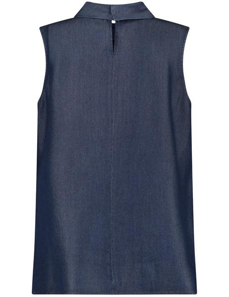 Verdeckter Druckknopfverschluss im Nacken. Fein schimmernde Qualität in Denim-Optik. Diese Bluse sorgt für glänzende Auftritte! Die fein schimmernde Qualität mit Denim-Optik wirkt lässig und elegant zugleich und ist die perfekte Sommer-Qualität, die so sanft auf der Haut liegt, dass man sie kaum spürt.