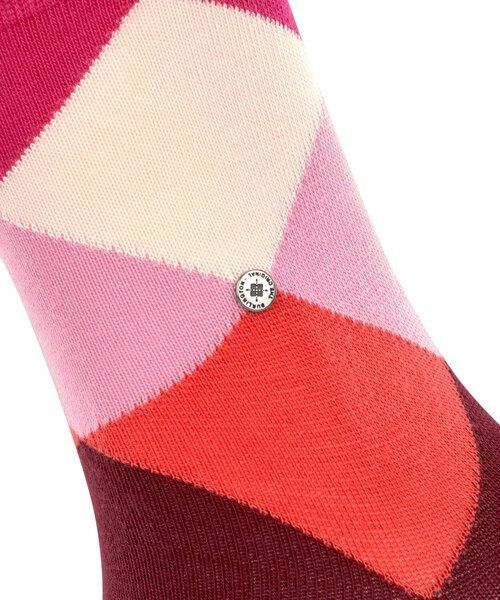 Modisch und sportlich präsentiert sich die Damensocke in bekanntem Argylemuster! Die bunten Rauten ergeben eine fröhliche Alloveroptik, die durch den typischen Burlington-Clip ihr i-Tüpfelchen erhält. In Sneakern wie auch in schicken Halbschuhen sind die Strümpfe ein fabelhafter Hingucker!