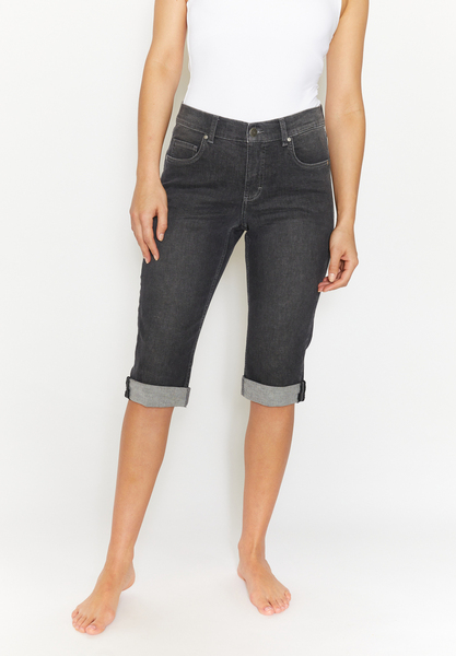 ANGELS greift zur Capri-Jeans und rettet Deine Sommer-Outfits. Der traditionelle Denim-Look mit Five Pockets und Zip-Fly wird perfekt ergänzt durch einen lässigen Beinumschlag. Der gerade Schnitt und die modische 3/4-Länge machen die Capri zur perfekten Begleiterin für die warmen Tage. Dank des Hochwertigen Baumwollgewebes mit Stretch-Anteil sitzt sie bei jeder Gelegenheit superbequem. Enthält nichttextile Teile tierischen Ursprungs.