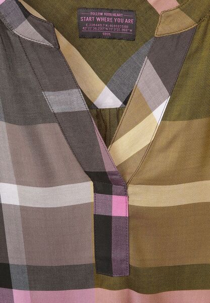Follow your heart! Lässige Damenbluse von CECIL mit geschlitztem Rundhalsausschnitt. Ein frischer Look mit herbstlichem Karomuster und legeren Details wie Turn-Up Ärmel oder Elastiksaum. Die softe Viskose trägt sich angenehm.