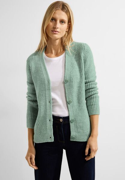 Gemütlicher Komfort! Die Damen Strickjacke von CECIL mit langen Ärmeln, V-Ausschnitt und Knopfleiste ist ein absolutes Must-Have für kühle Tage. Der grob gestrickte Stoff und das klassische Design verleihen dieser Jacke eine zeitlose Eleganz. Egal, ob du sie über einem Kleid oder zur Jeans trägst, dieser Cardigan sorgt für gemütliche Wärme und einen stilvollen Look.