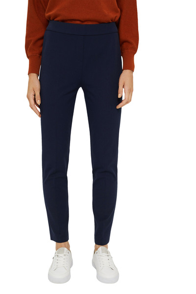* Glatter Baumwoll-Mix mit Viskose und Stretchkomfort * Bequemer Gummibund * Angedeuteter Hosenschlitz * Bügelfalte * Zwei dekorative Paspeltaschen hinten * Knöchellanges, schmal zulaufendes Bein