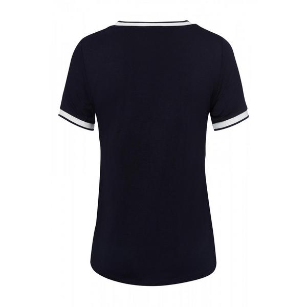 Feminines T-Shirt von MORE & MORE in marine mit hellen Kontrast-Abschlüssen.