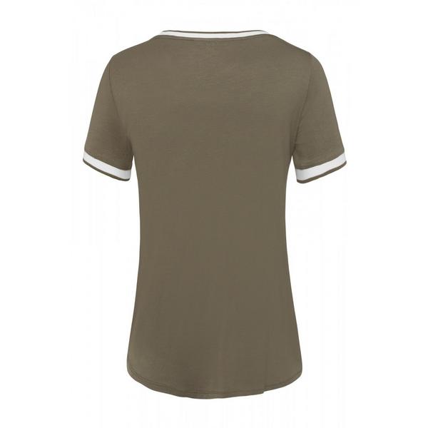 Feminines T-Shirt von MORE & MORE in khaki mit hellen Kontrast-Abschlüssen.