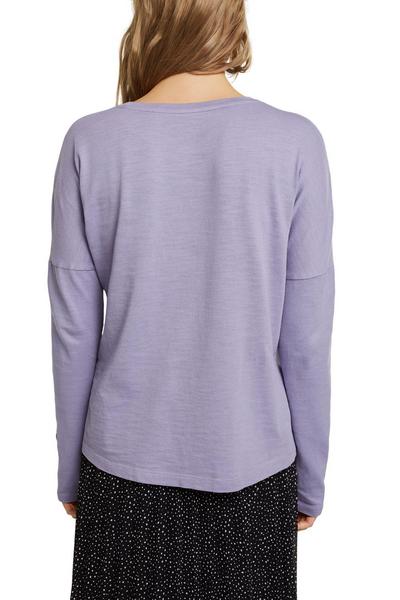 * Melierter Jersey aus 100% Organic Cotton * Organic Cotton: Baumwolle aus kontrolliert biologischem Anbau * Weiter Rundhalsausschnitt * Überschnittene Schultern mit tiefer angesetzten Ärmeln * Lange Ärmel mit 1-Knopf Turn-Up-Option * Nach vorn verlegte Seitennähte mit Zierschlitzen am Saum * Gerader, lockerer Schnitt