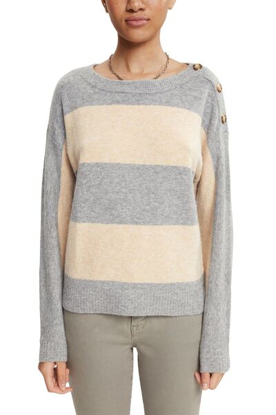 * Weicher Strick aus Material-Mix mit Wolle und Stretchkomfort * Allover Querstreifenmuster * Rundhalsausschnitt * Drei Knöpfe in Hornoptik auf der linken Schulter * Gerippte Abschlussbündchen