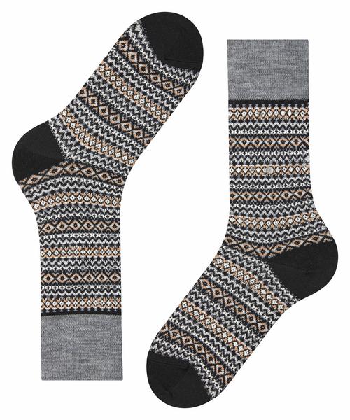 Die winterliche Wollsocke ist der ideale Begleiter für die kalte Jahreszeit. Der angenehme Wollmix wärmt zuverlässig die Füße und das klassische Fair-Isle-Design präsentiert sich in passenden Farben.