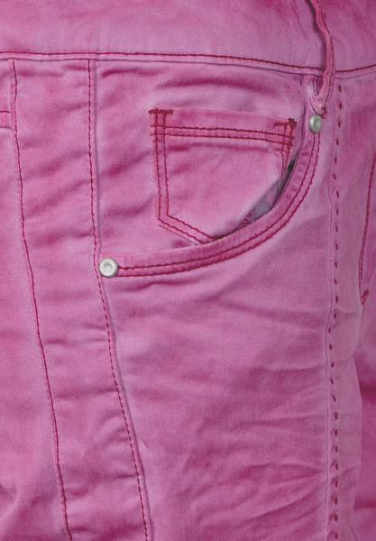 Die locker sitzende Loose Fit Hose hat eine niedrige Leibhöhe und zum Knöchel schmaler werdende Hosenbeine, die Sie für einen besonders coolen Look lässig aufgekrempelt tragen können. Der coole Crash Effekt des soften Baumwollmaterials sorgt bei der weichen, bequemen Hose für ein angenehmes, griffiges Tragegefühl. Mit dem kleinen Stretchanteil sitzt sie dabei immer perfekt und bietet trotzdem Bewegungsfreiheit. Mattsilberne kleine Nieten an den Frontpockets, sowie der gleichfarbige Metallknopf am Bund unterstreichen zusammen mit den dekorativen Ziernähten auf den Hosenbeinen die lässig sportive Optik der Hose noch zusätzlich. Loose Fit mit lässig-coolem Crash Effekt Mit mattsilbernen Nieten Tapered Leg mit dekorativer Mittelnaht vorn Weiche Baumwolle mit kleinem Stretchanteil Hinweis: Wegen des lässigen Crash-Looks wird die Hose entsprechend geknautscht geliefert. Maße bei Inch-Größe 26/32 ca.: Innenbeinlänge (ungekrempelt) 82cm, Leibhöhe 23cm, Fußweite 16cm Material: Oberstoff 98% Baumwolle, 2% Elasthan