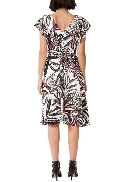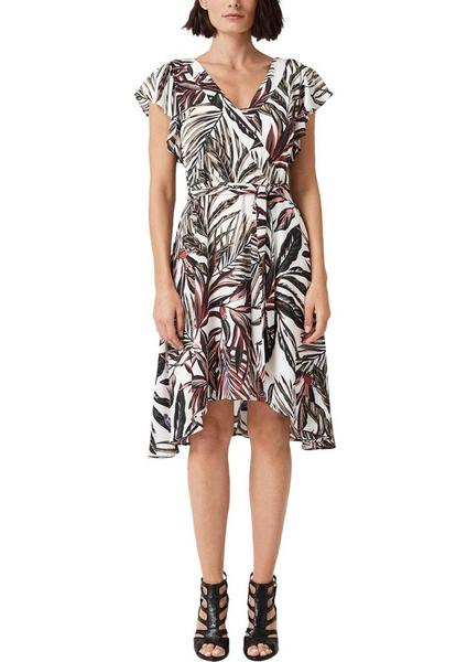 tiefer V-Ausschnitt mit asymmetrischer, breiter Blende für den Wickel-Look, nahtfeiner Reißverschluss am Rücken, Volantrüschen über den Schultern, Abnäher an der Taille mit Textilgürtel zum Binden, schwingender Rock mit dekorativem Faltenwurf, stark abgerundeter High Low-Saum, taillierte, feminine Passform; Rückenlänge bei Größe 36 ca. 95 cm, hochwertige, fließende Crêpe-Qualität; Futter aus softem Viskosemix-Jersey,