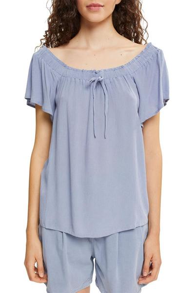 * Leichter Webstoff mit Crinkle-Effekt aus reiner Viskose * Elastischer Carmen-Ausschnitt * Binde-Detail auf der Vorderseite * Weite Flügelärmel * Lockere, fließende Passform