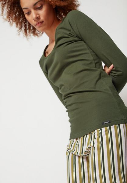 Richtig gemütlich wird es erst mit dieser kuscheligen Schlafanzughose für Damen aus einem soften Baumwoll-Elasthan-Mix. Als lange Pyjamahose ist es ihre Aufgabe, vor allem bequem zu sein. Die leicht konisch zulaufenden Beine machen die Nachtwäsche jedoch auch optisch zum absoluten Style-Highlight.