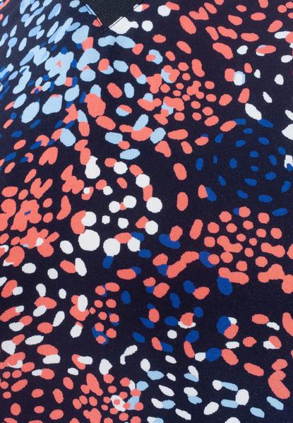 Zarte Viskosebluse mit femininen V-Ausschnitt zum schnellen Hineinschlüpfen. Ein abstrakter, farbenfroher Allover-Tupfen-Print gibt den Ton des Styles an. Überschnittene 3/4 Arme sowie ein schmaler Gummizug im Saum geben der Bluse Lässigkeit. Mit dekorativem Logo-Tape an den Ärmelenden.