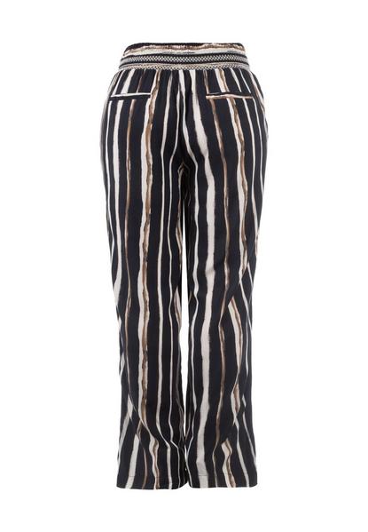 Gestreifte Viskosehose Schöne, länglich gestreifte Hose aus fließender Viskose. Mit breitem, gesmoktem Gummibund und geradem Bein. Hinten mit Fake-Gesäßtaschen.