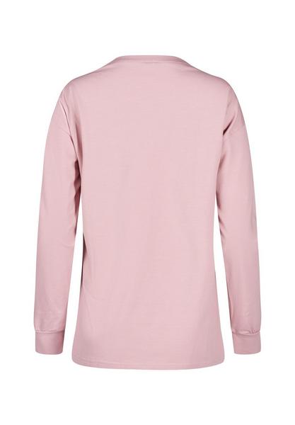Jederzeit komfortabel einschlafen oder einfach auf dem Sofa relaxen. Dieses schöne Langarmshirt für Damen aus weicher Baumwolle macht es möglich und bringt Gemütlichkeit und Style zusammen. Vom lockeren Schnitt bis zum Bündchen am Saum ist das Damen-Shirt komplett durchdacht und einfach supercool.