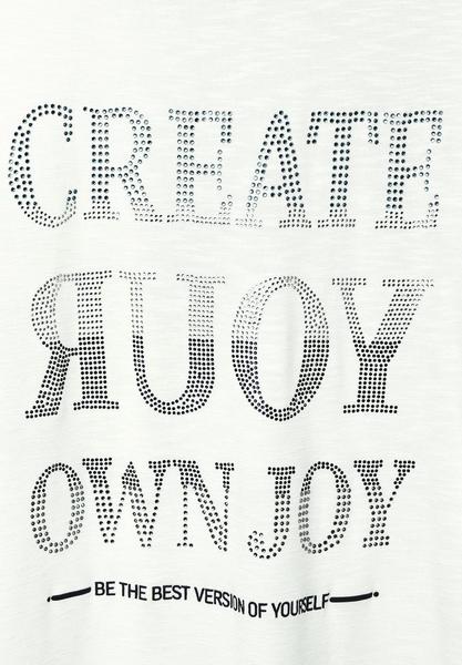 Shine on me! Das Kurzarmshirt mit Dekosteinen von CECIL ist ein modisches It-Piece. Mit Kurzarm, U-Boot Ausschnitt und einem Wording Frontprint aus Steinchen ist es ein Hingucker. Aus zarter Viskose, verleiht das Shirt ein angenehmes Tragegefühl. Es besitzt zudem eine Flammgarn Optik für einen besonderen Look. Das Shirt ist hinten etwas länger geschnitten und verfügt über seitliche Schlitze im Saum, was für eine lässige Passform sorgt.