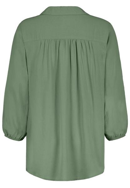 DOB Bluse, 3/4 Ärmel mit Gummizug, Rundhals mitBlende, V-Ausschnitt und Umlegekragen,Passe hinten mit Falten, Rückteil länger als Vorderteil