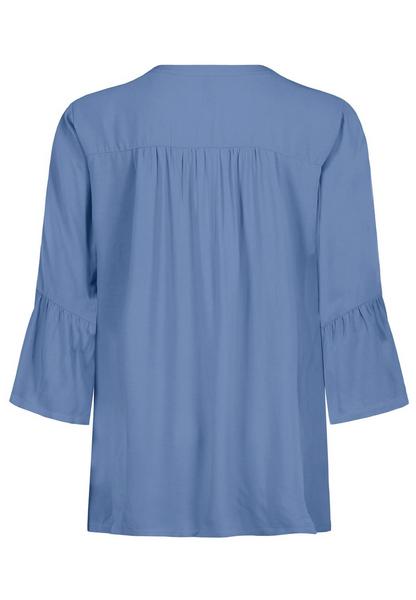 DOB Bluse, 3/4 Ärmel mit Volant,Stegkragen und Blende am tiefen Ausschnitt, Passen