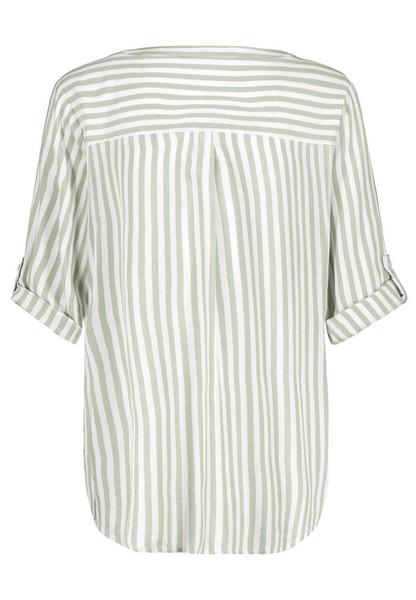 DOB Bluse, AOP, 3/4 arm, Stegkragen,Rundhals mit Schlitz, Passe mit Querstreifen,Aufschlag, Rückteil länger