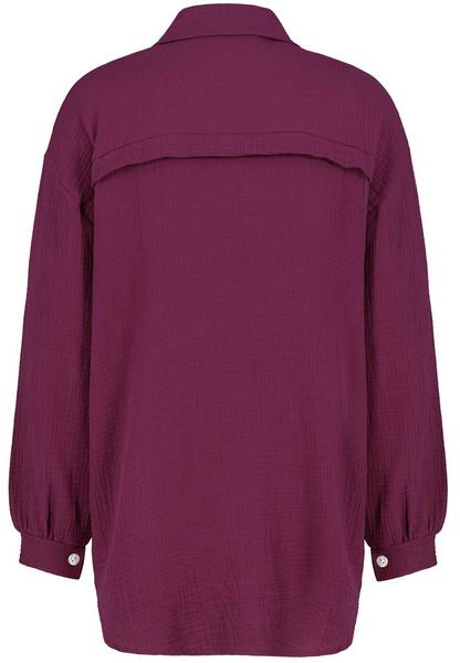 DOB LONG-Bluse, Oversize, überschnittene Schulter,Passe hinten mit Überlapp, Hemdkragen, Knopfleiste, gerundeter Saum