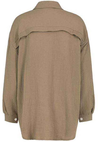 DOB LONG-Bluse, Oversize, überschnittene Schulter,Passe hinten mit Überlapp, Hemdkragen, Knopfleiste, gerundeter Saum
