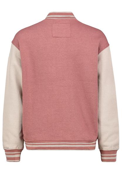 DOB Sweat College Jacke, oversize,Leistentaschen,Ärmel in Kontrast, zweifarbige 2x2 Rippe an Saum+Stehkragen+Ärmel, Print auf Brust