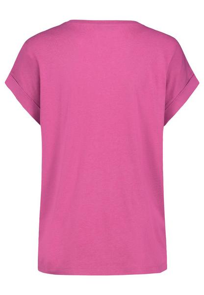 DOB T-Shirt, angeschnittene Ärmel, Rundhals mit Blende, Druck "Savoir vivre"auf dem Vorderteil