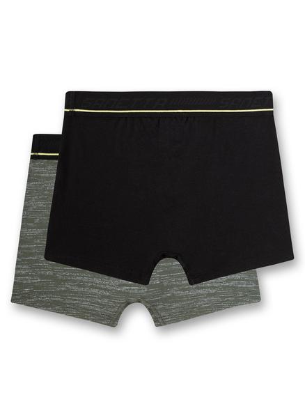 Doppelpack aus zwei Sanetta-Shorts in meliertem Khaki und Schwarz mit sportlichem Webbund.
