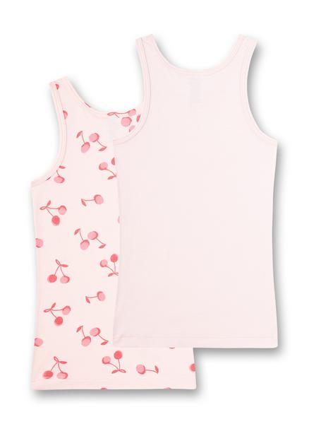 Doppelpack aus zwei Unterhemden mit pfiffigem Kirschen-Allover und unifarben von Sanetta.