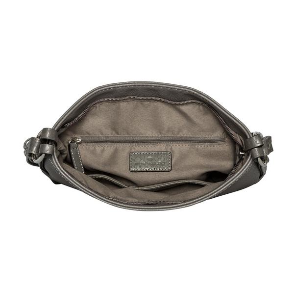 Ein weiterer Bestseller der Tom Tailor-Taschenkollektion! Das Modell Elin besticht durch eine außergewöhnliche Aufhängung an den Seiten, drei neue, sehr harmonische Materialkombinationen mit fein geprägtem Schlangenimitat sowie die leicht kontrastfarbene Steppung. Umhängetasche mit Reißverschlussöffnung, 1 Metall-Reißverschlussvortasche, 1 Reißverschlussrückfach, innen 1 Reißverschlussfach, 1 Smartphone-Fach, 1 Steckfach, 1 verstellbarer langer Schulterriemen. Maße in cm: 28,5x9x26