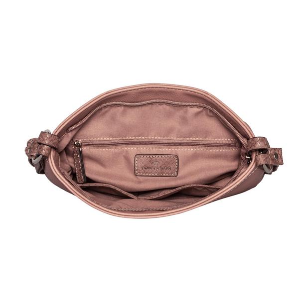 Ein weiterer Bestseller der Tom Tailor-Taschenkollektion! Das Modell Elin besticht durch eine außergewöhnliche Aufhängung an den Seiten, drei neue, sehr harmonische Materialkombinationen mit fein geprägtem Schlangenimitat sowie die leicht kontrastfarbene Steppung. Umhängetasche mit Reißverschlussöffnung, 1 Metall-Reißverschlussvortasche, 1 Reißverschlussrückfach, innen 1 Reißverschlussfach, 1 Smartphone-Fach, 1 Steckfach, 1 verstellbarer langer Schulterriemen. Maße in cm: 28,5x9x26