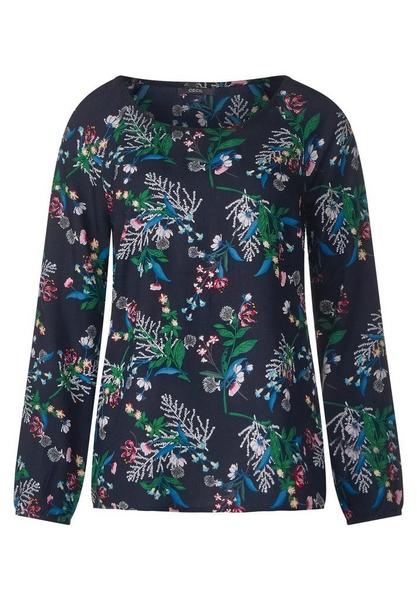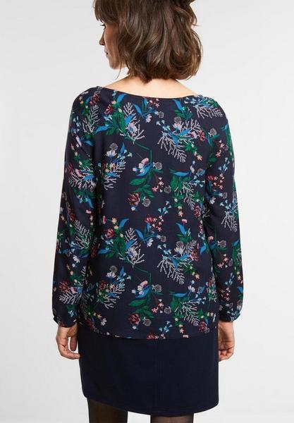 Ein kleines bisschen Frühling: strahlt diese Bluse aus. Vor allem die tolle Farbkombination macht den allover Blumenprint zum Hingucker. Die softe Viskose Qualität sorgt für ein gutes Gefühl auf der Haut.\n\n\n Blumenprint\n Brustabnäher\n Rundhalsausschnitt\n Lange Ärmel\n Elastikbund\n Maße bei EU-Größe XS ca.:\n Länge 62cm, Breite 48cm, Taille 48cm\n Material: 100% Viskose\n\n\n\n\n\n