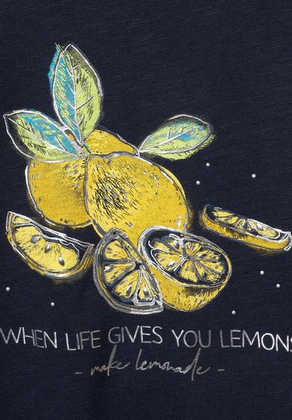 Make lemonade! Sportliches Damen T-Shirt von CECIL. Auf der Vorderseite ist der Partprint in Form von Zitronen mit glänzendem Folienprint ein toller Hingucker. Der Rundhalsausschnitt und gekrempelte Ärmelsäume unterstreichen die lässige Note des Shirts perfekt.