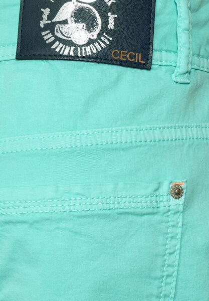 Sommer Style! Loose Fit Damenhose im Style New York von CECIL. Die Kombi aus Reißverschluss und zwei Knöpfen setzt tolle Akzente auf der Unifarbe. In Middle Waist und mit Slim Legs sitzt sie in 3/4-Länge sehr bequem.