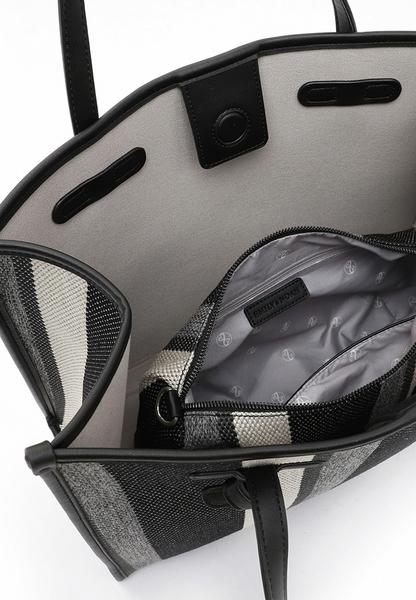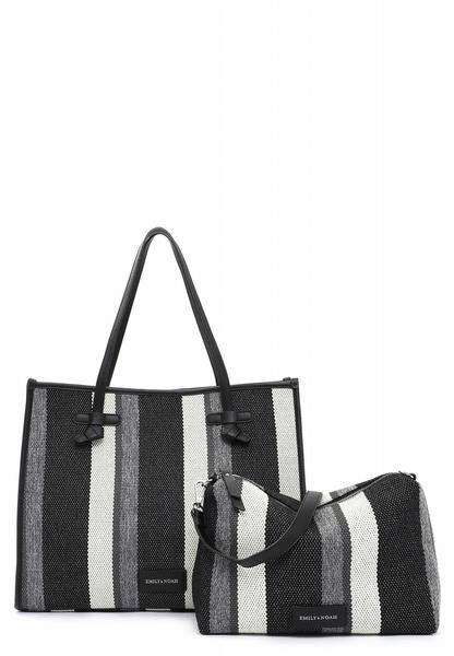 Authentisch, selbstbewusst und brillant - so zeigen sich Frauen in ihrem aufregenden Alltag. Übrigens am liebsten mit ihrer Lieblingstasche. Der Shopper Esther kommt im Streifen-Design mit Magnetdruckknopf und sieht einfach gut aus. Ein wahrer Alltagsbegleiter - der Shopper Esther. Es ist so einfach, für alle Eventualitäten gerüstet zu sein. Gefertigt aus Feinsynthetik ist das Modell, das sich mit einem Magnetdruckknopf verschließen lässt. Durch das Material ist es schön leicht und angenehm im Griff. Streifen-Design und Bast-Optik sind fein gearbeitet und verleihen dem Shopper einen edlen Look. EMILY & NOAH - für selbstbewusste Frauen, die wissen, wer sie sind. Mit dem Accessoire von EMILY & NOAH wird ein ganz und gar individueller Stil kreiert. Kombiniert mit einer schicken Hose, einem Kleid oder einer angesagten Bluse zeigen die Produkte des Labels wahre Persönlichkeit. Ein eher festes Material sorgt bei Esther dafür, dass wichtige Dinge keine Knicke bekommen. Für das süße Extra sorgt die Applikation mit dem Logo-Patch, die einen zusätzlichen Akzent setzt. Der neue Lieblingsbegleiter wird dank längenverstellbarem, abnehmbarem Umhängeriemen und zwei Tragegriffen einfach und bequem über der Schulter getragen. Manchmal braucht man etwas mehr Platz im Shopper - für solche Fälle eignet sich das Modell perfekt, weil hier wirklich alles reinpasst, was unterwegs dabei sein muss.