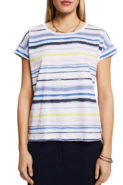 * Baumwolle * Gerade Passform * Allover geringelt * Rundhalsausschnitt * kurze Ärmel