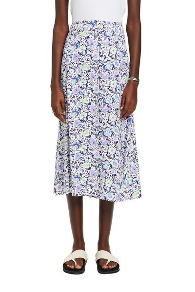 * Stoff aus reiner Viskose * Volantsaum mit Schlitz * Auffälliges Allover-Floraldesign * Midi-Länge * Elastischer Gummizugbund